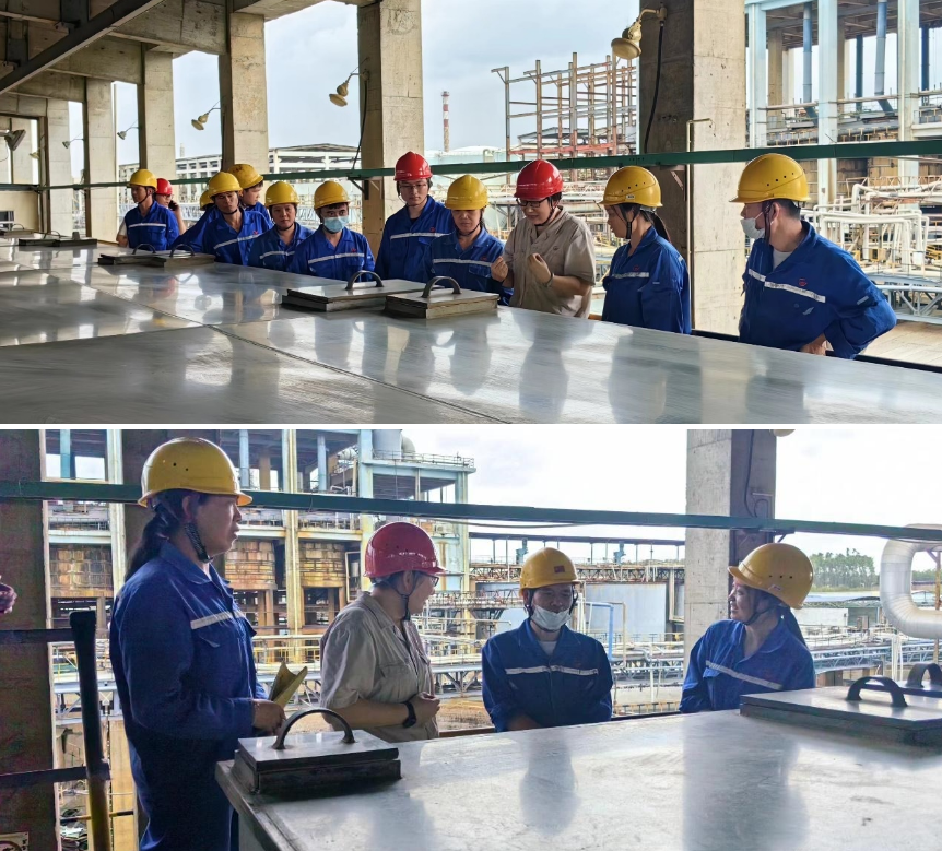 在交流会上,张小凤首先分享了自己在主操技能提升方面的经验,她认为在生产过程中,必须严格按照作业指导书把控各项工作指标,并通过有效沟通和协同合作,确保生产流程的顺畅,同时要积极采取各项提质增效措施,降低物料消耗,帮助公司降低生产成本。她还强调5s现场管理的重要性,认为通过规范化的现场管理可以极大地提高工作效率。除了分享自己的工作经验外,她耐心解答了大家提出的关于萃取工段方面的问题,并分享了一些自己在工作中总结的小技巧和注意事项。现场气氛热烈,大家共同探讨问题,相互学习、共同进步。