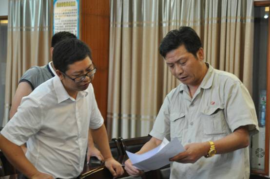 2015年8月21日,博白县委组织部长吴厚强在龙潭镇人大主席林国伟的陪同下来我司检查验收非公企业党建工作“百日攻坚”的落实情况。