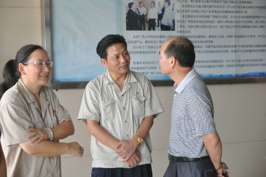 广西银亿公司副总经理张学飞、副总工程师和润秀接待了自治区北部湾办产业发展处副处长李成霆一行并分别对广西银亿公司已获得的2014年广西北部湾物流补助资金具体落实情况和公司目前的经营状况、发展规划、进口原料通关及物流现状等方面作了详细的汇报。