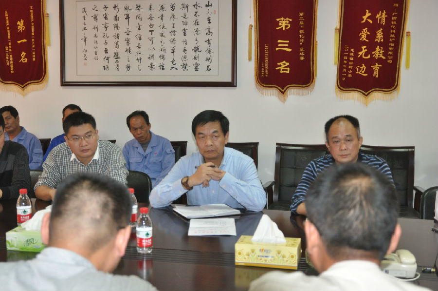 2015年11月4日下午,玉林市总工会党组书记廖哲在博白县总工会、龙潭产业园领导的陪同下,一行10人到我司调研座谈。公司副总经理任卫东、工会副主席李国昌、副总工程师和润秀、综合办公室主任章群宏及部分员工参加了座谈会。