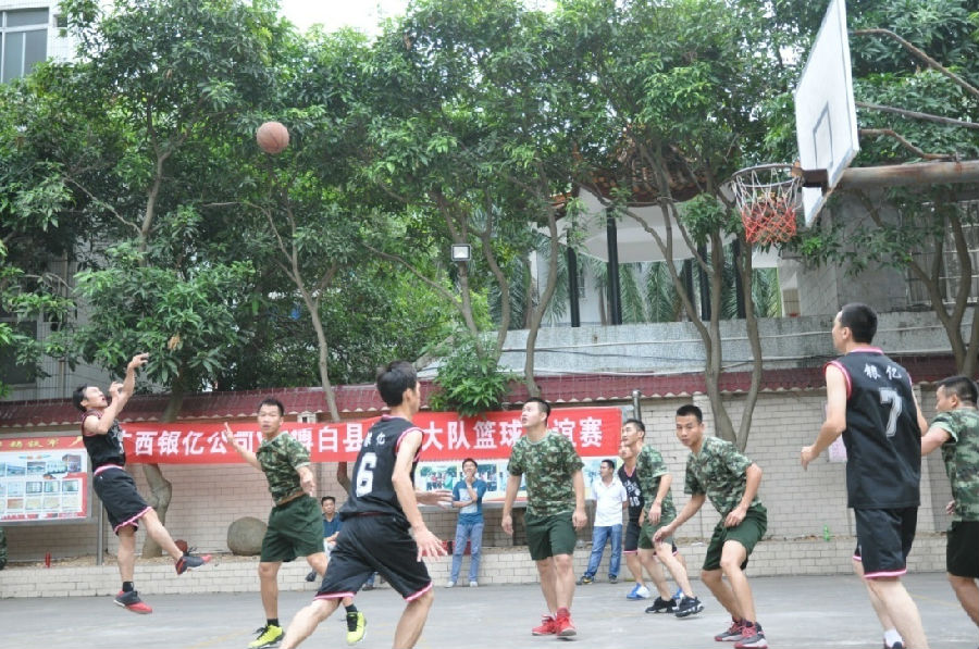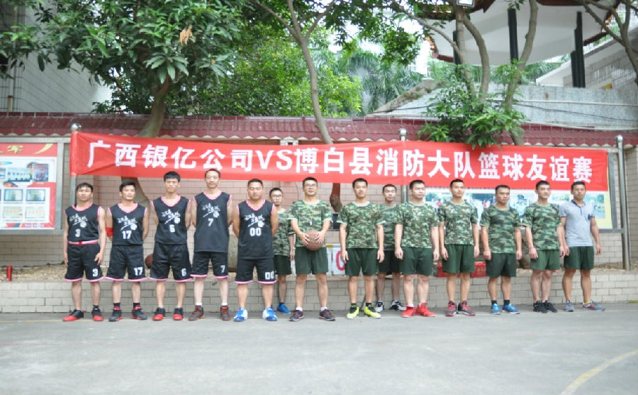 为了增进广西银亿公司与博白县消防大队的友谊,2015年11月09日星期一下午,由党工团联合组织的军民联谊活动;第二届广西银亿公司vs博白县消防大队篮球友谊赛在博白县消防大队篮球场拉开帷幕,广西公司党委委员章群宏、工会副主席李国昌、团委副书记朱旭波均现场助威!广西银亿公司篮球队派10名队员参加比赛,公司拉拉队到场助阵。