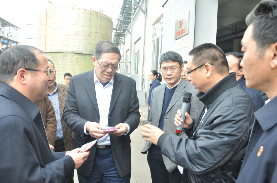 随后,陈刚副主席在王小丰董事长等领导班子的陪同下深入广西银亿镍盐、钴盐车间生产现场。在钴盐车间,任卫东副总经理就钴盐车间建设与产生、技术与创新方面做了详细汇报。陈刚副主席、韦韬市长认真考察车间生产环境、详细了解生产流程、在线监测记录以及产品包装过程等情况。