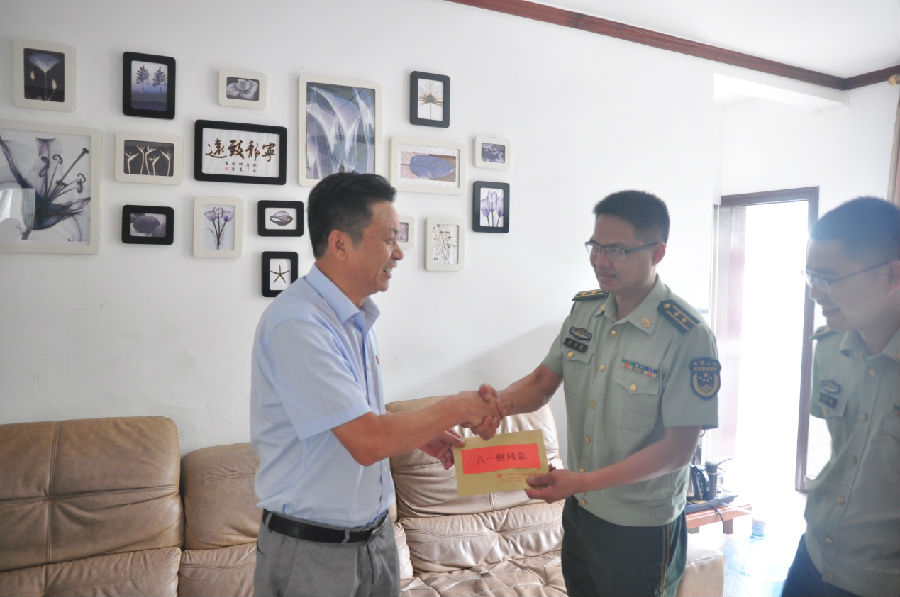 在中国人民解放军建军 91周年之际,广西银亿新材料有限公司积极开展军企互拥,共建和谐等慰问活动。党委副书记章群宏、综管办副主任唐宏华、生产部副经理杜成林等分别前往武警边防部队山口派出所、武警博白消防大队慰问官兵,为他们送去节日的问候和慰问金。